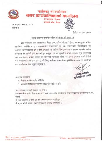 INVITATION FOR BIDS Different Roads Maintainance Work In Kalika Municipality ward no - 1, 5, 6.