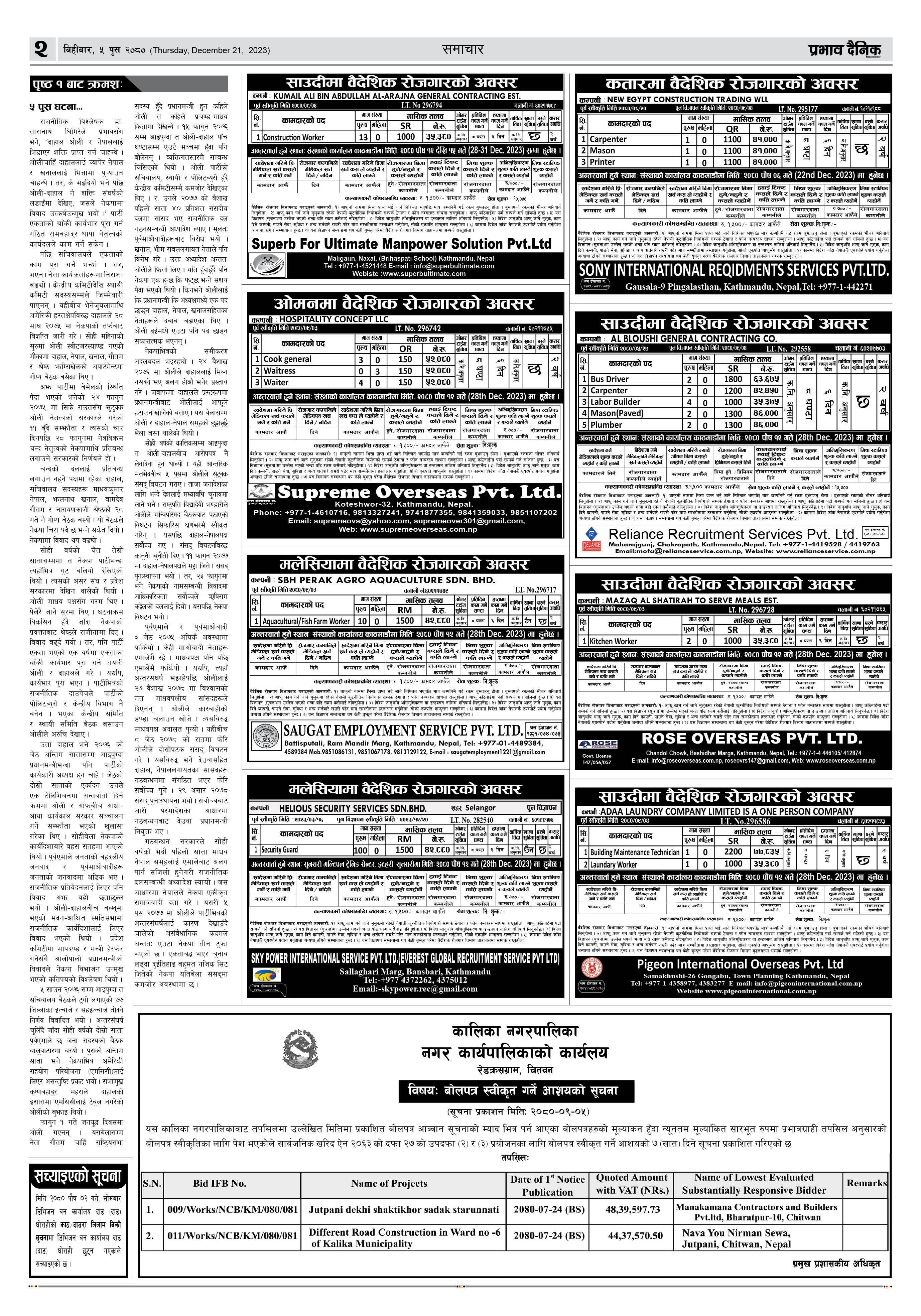 वोलपत्र स्वीकृ गर्ने आशयको सूचना, विभिन्न वाटो निर्माण ।