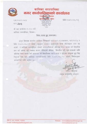 » श्री वडा कार्यालयहरु सवै कालिका नगरपालिका: श्रेष्ता कायम सिफारिसको राजश्व छुट सम्बन्धमा ।