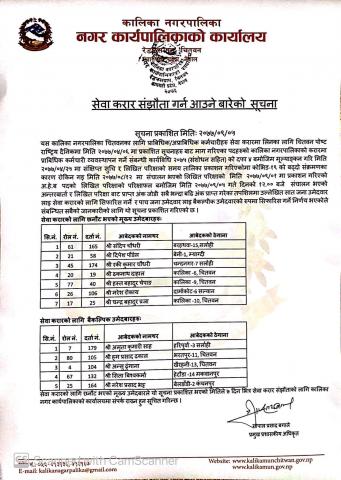 कालिका नगर कार्यपालिका, वडा कार्यालय तथा स्वास्थ्य संस्थामा कार्यरत कर्मचारीहरुको सम्पर्क विवरण।